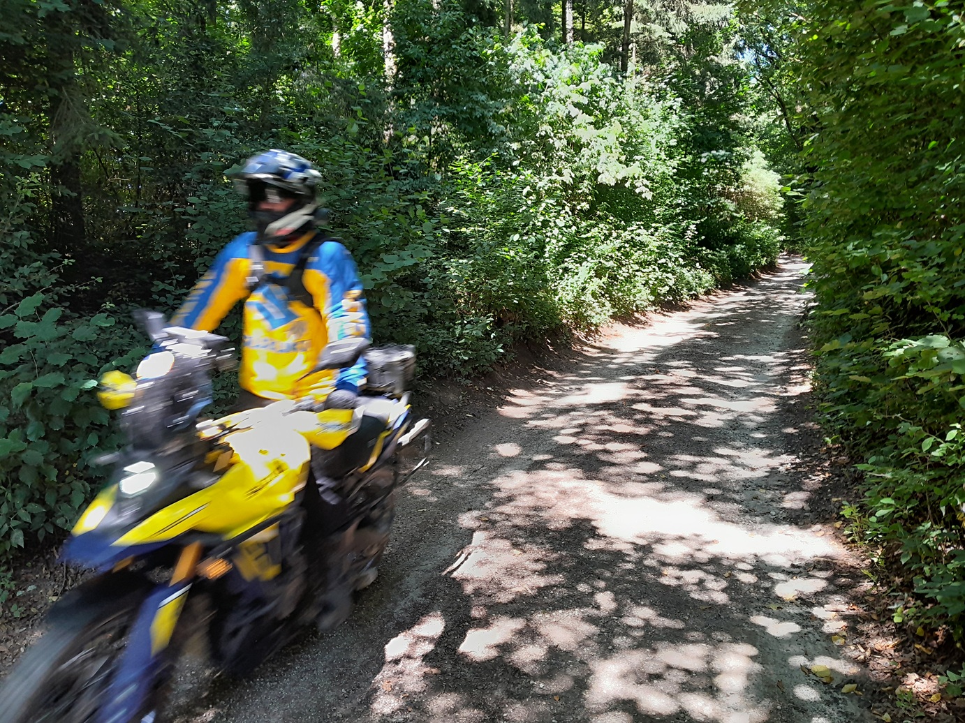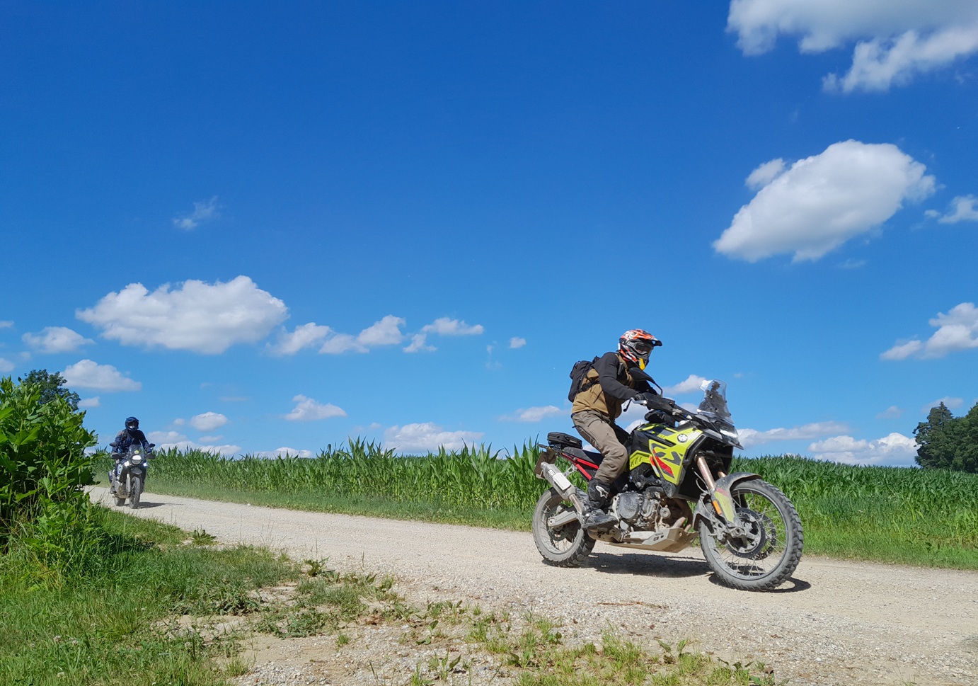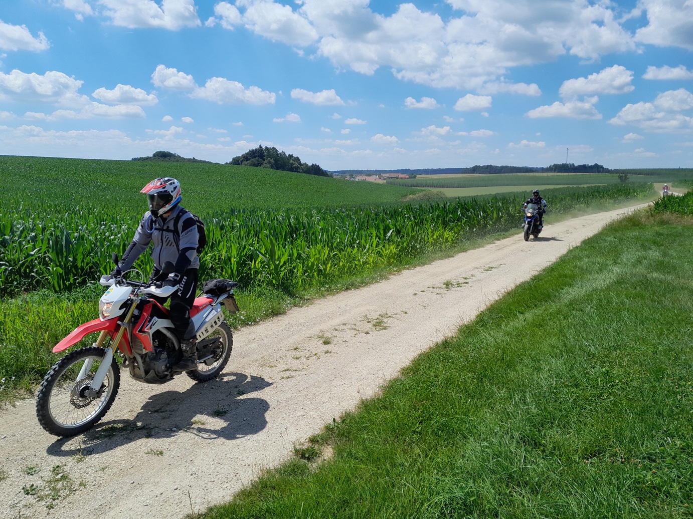 30 Minuten nördlich von München geht es los, feine legale geschotterte Ortsverbindungsstraßen, dann wieder Asphalt, oftmals auf sehr kleinen Nebenstraßen unterwegs. Zwischendurch gibt es einen Cappuccino in der Cafeteria, Mittags kehren wir in einem typisch bayrischen Wirtshaus ein. Natürlich geben wir Dir Tipps unterwegs, zum besseren Enduro fahren.