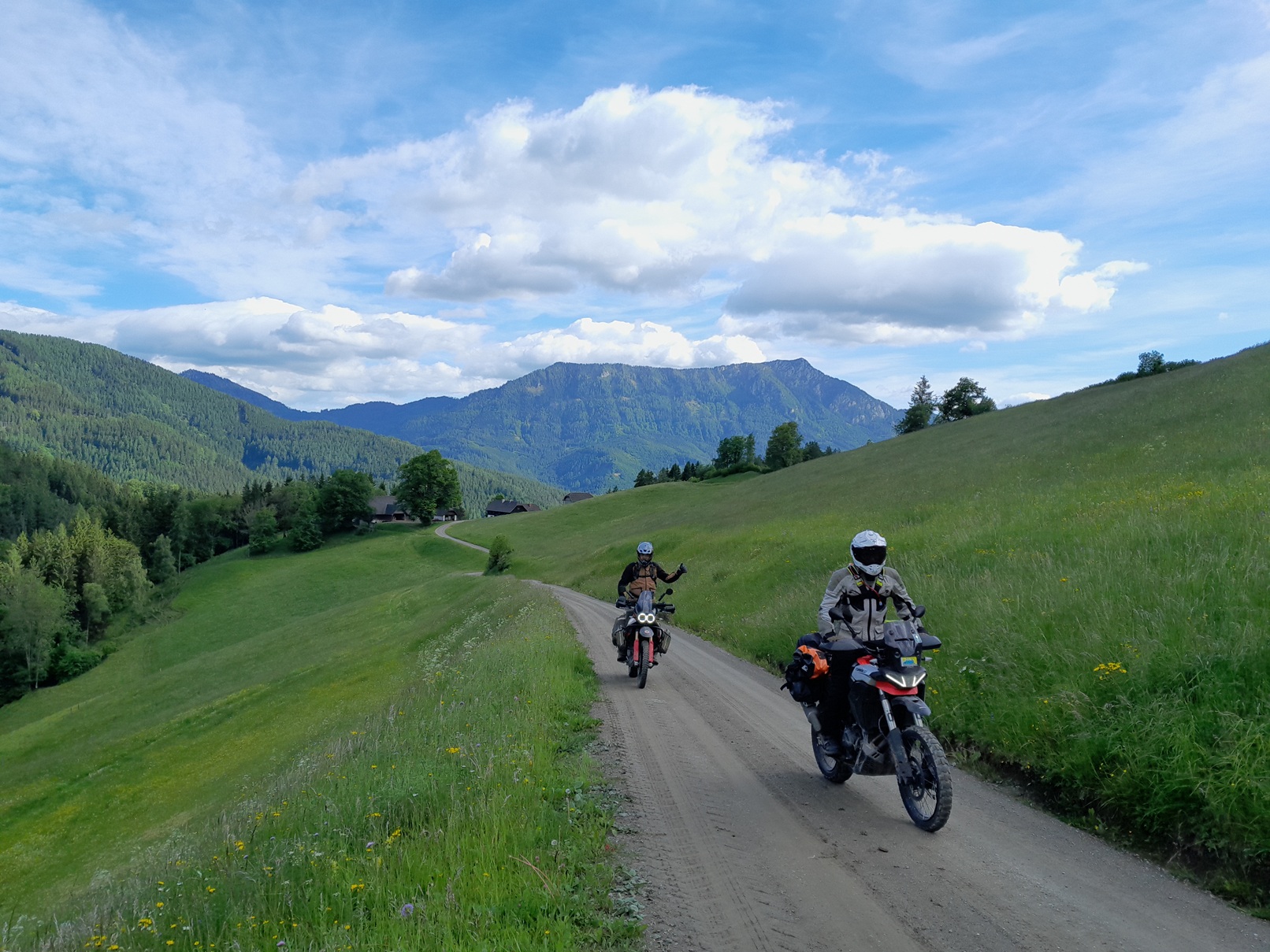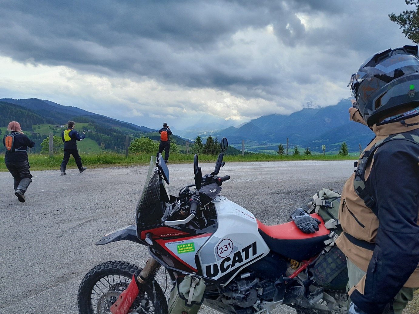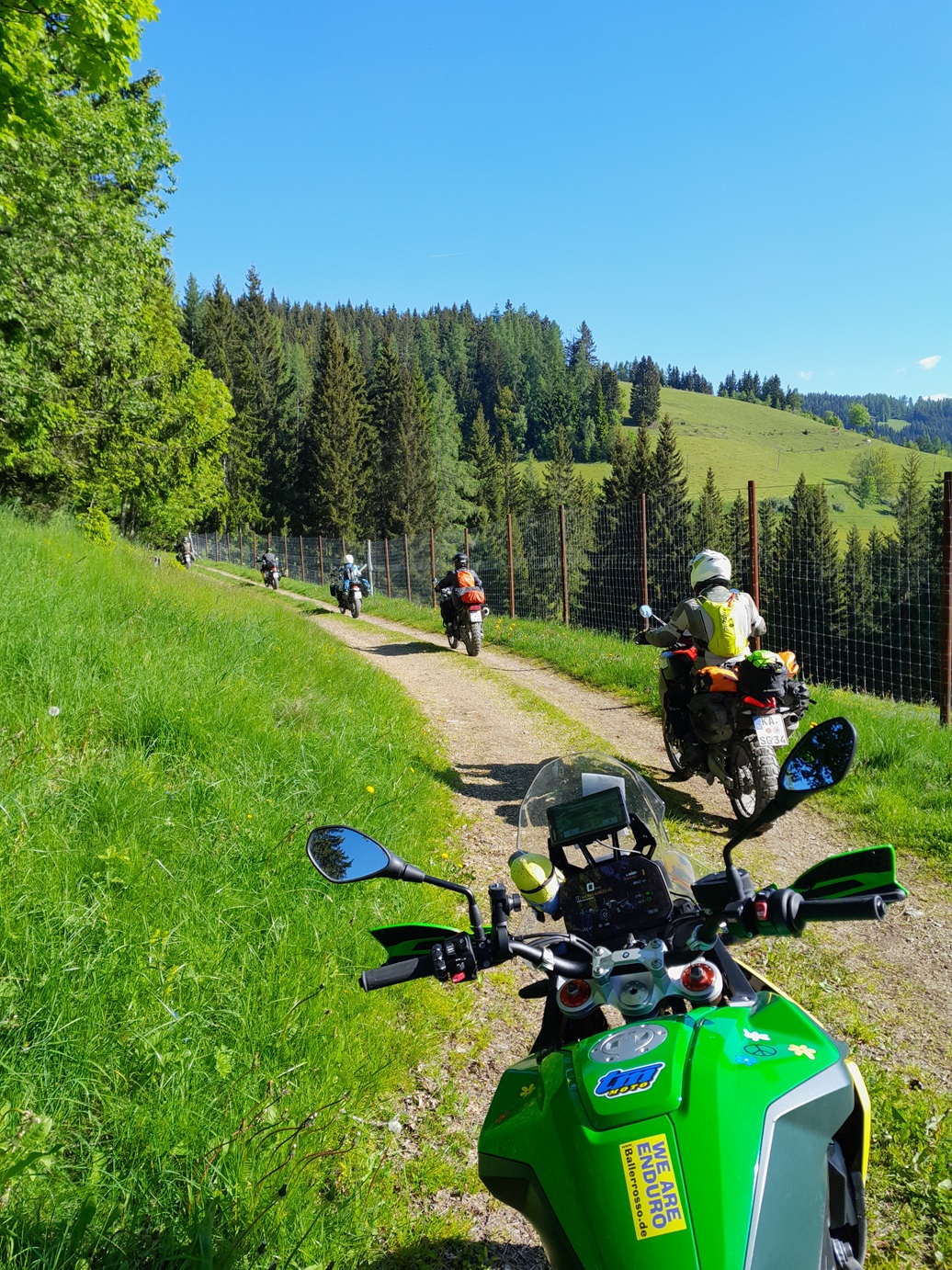 Südlich von München, traumhafte Location, geht´s los...dann über Nebenstrassen, schon auf deutscher Seite gibt´s die eine oder andere, wunderschöne Schottereinlage durch das schöne Voralpenland ...dann in Österreich, werden diverse legale Schotterstraßen bewältigt und schön gelegene, teils hochalpin liegende Berghütten über Schotter, ansteuert - alles in einer wunderschönen Landschaft. Gegessen wird in sehr guten Gasthöfen oder Berghütten und an den Abenden ein traumhaft gelegener Berggasthof, klein, alt aber wunderschön gelegen - das Essen ? Vom Feinsten, der Wirt ein ganz lieber. Am zweiten Tag geht es über einen wunderschönen Asphaltpass weiter Richtung Steiermark um dort gleich auf Schotter abzubiegen. Dort erwarten uns vor der Mittagspause, eine lange, schöne und vergessene Schotteretappe. Um am Nachmittag, nochmals wunderschönen Schotter und kleinste Nebenstraßen zu erklimmen. Übernachtet wird im einem kleinem Gasthof, oben in den Bergen, dort wo die nächste Schotterstrasse startet. Der dritte Fahrtag führt über kleine Teerstraßen und Schotterstrassen...zum legendären Erzberg - dem Berg wo jedes Jahr das legendäre www.erzbergrodeo.at bzw. www.redbullerzbergrodeo.com stattfindet.
